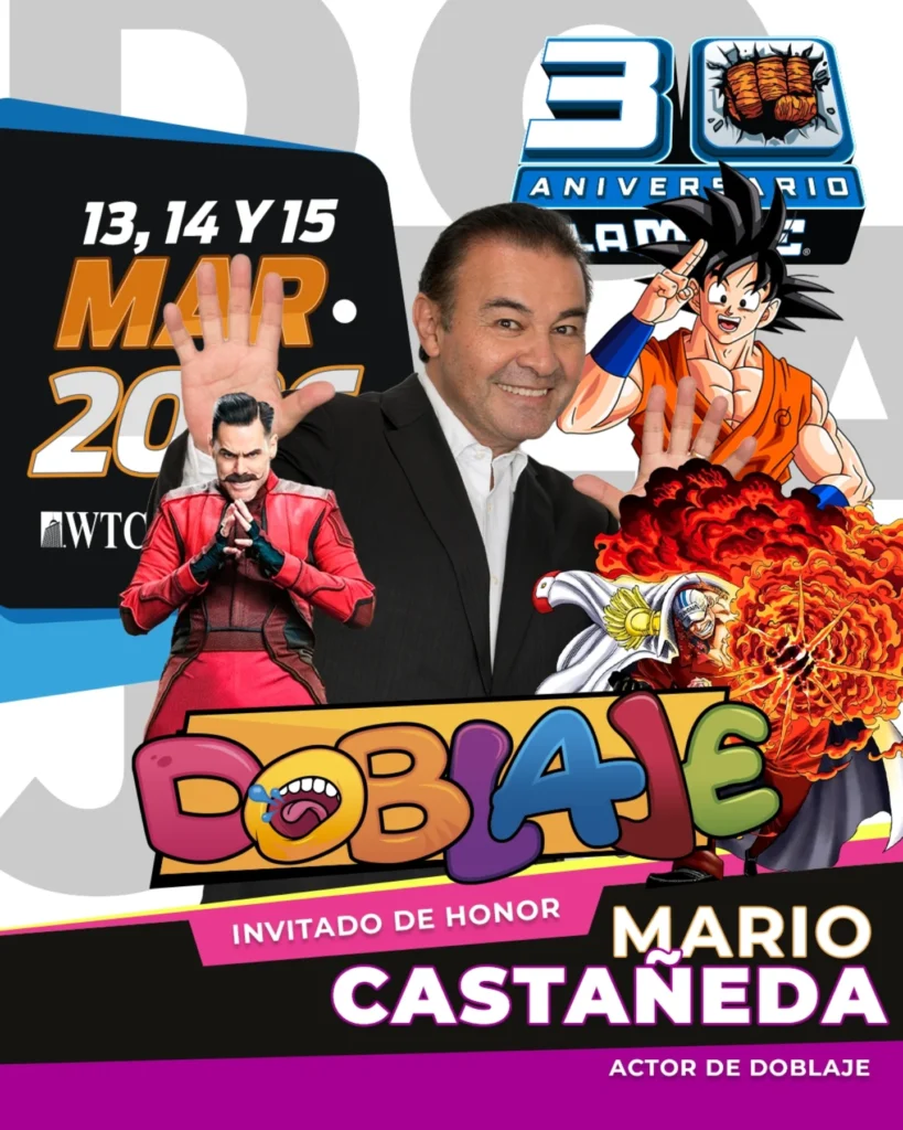 El área de doblaje, que se ha vuelto un pilar fundamental de la convención, recibirá a voces icónicas como las de Mario Castañeda y René García (Dragon Ball), Humberto Vélez (Los Simpson) y Luis Carreño (Bob Esponja).